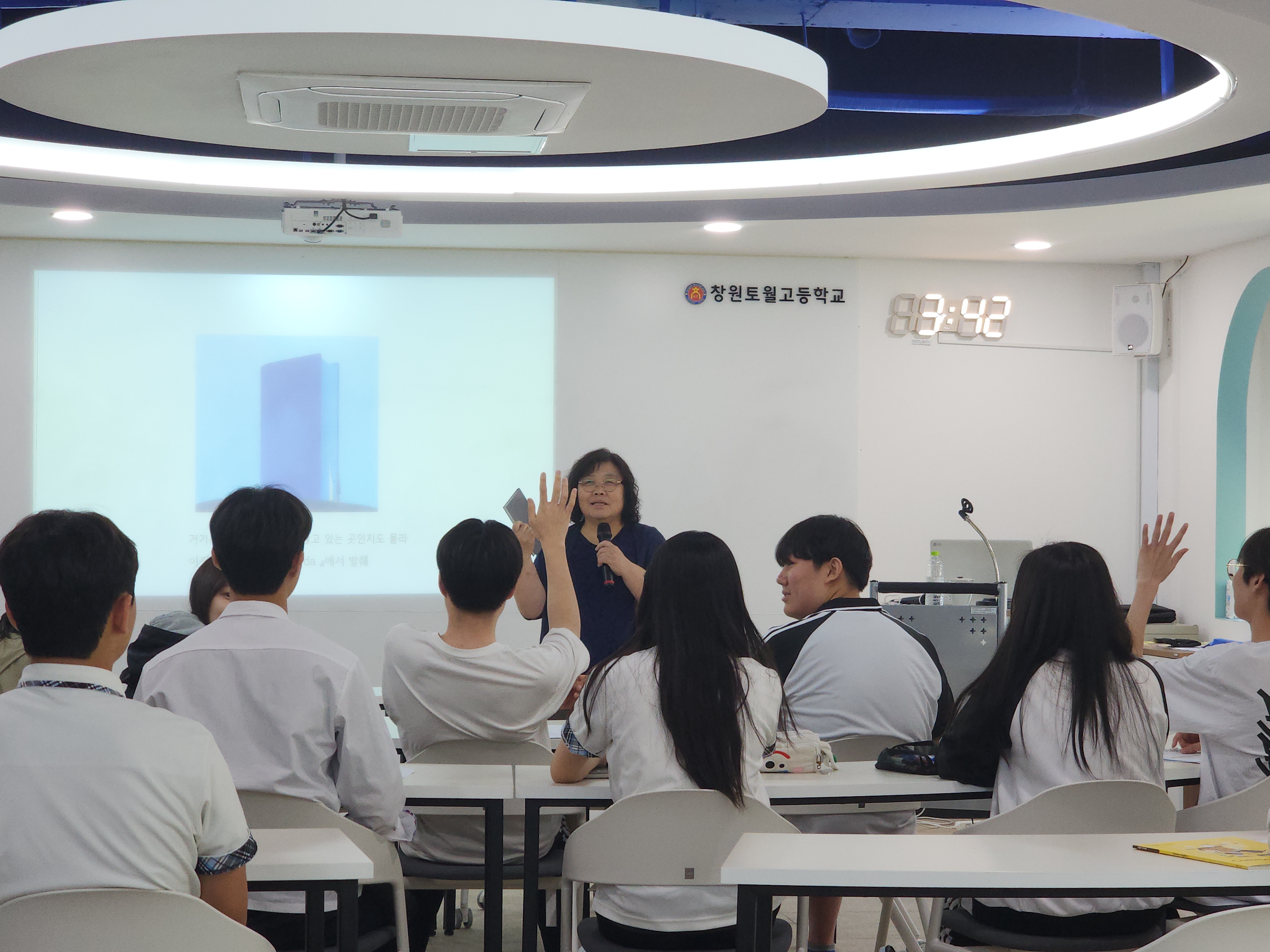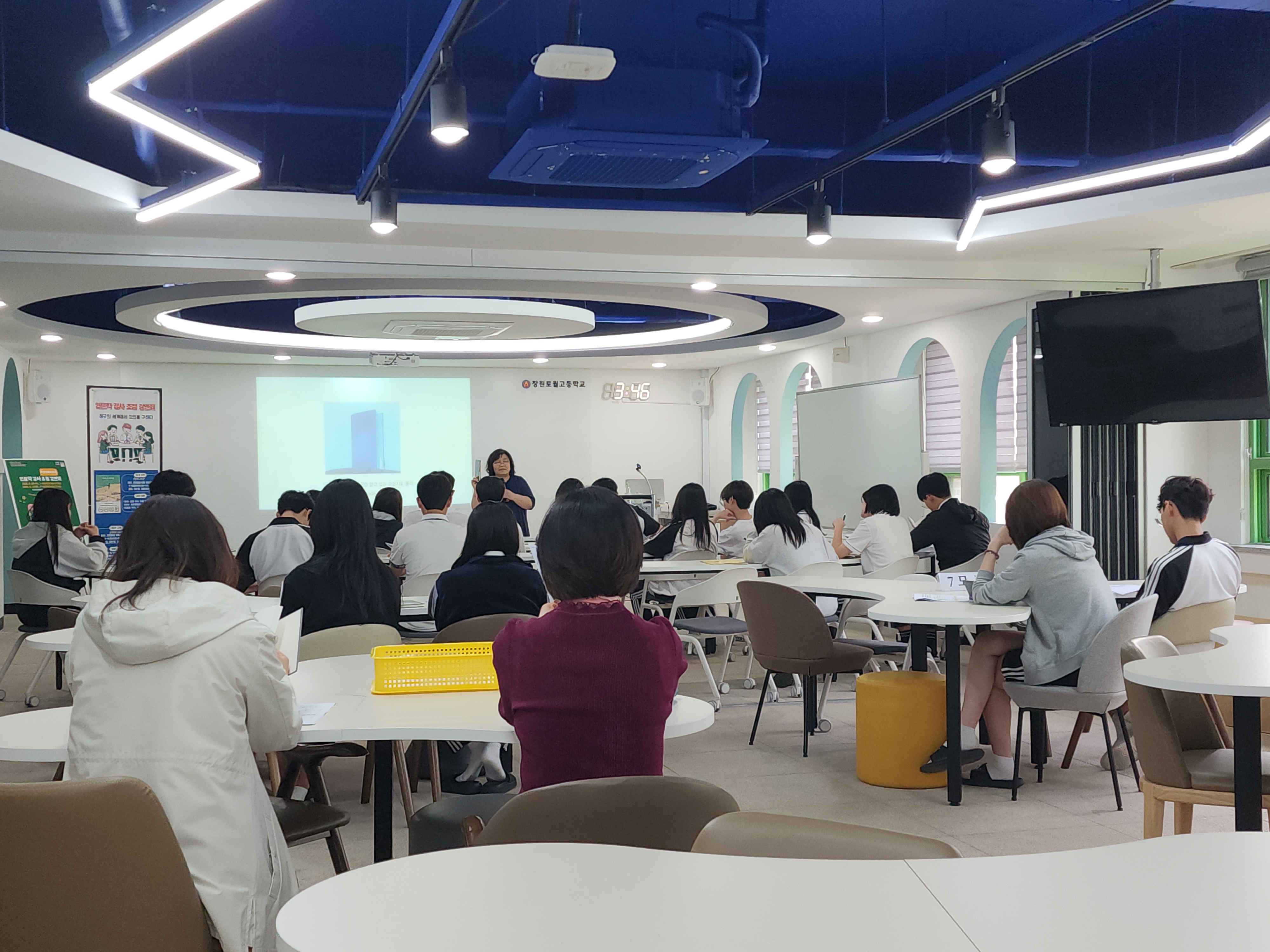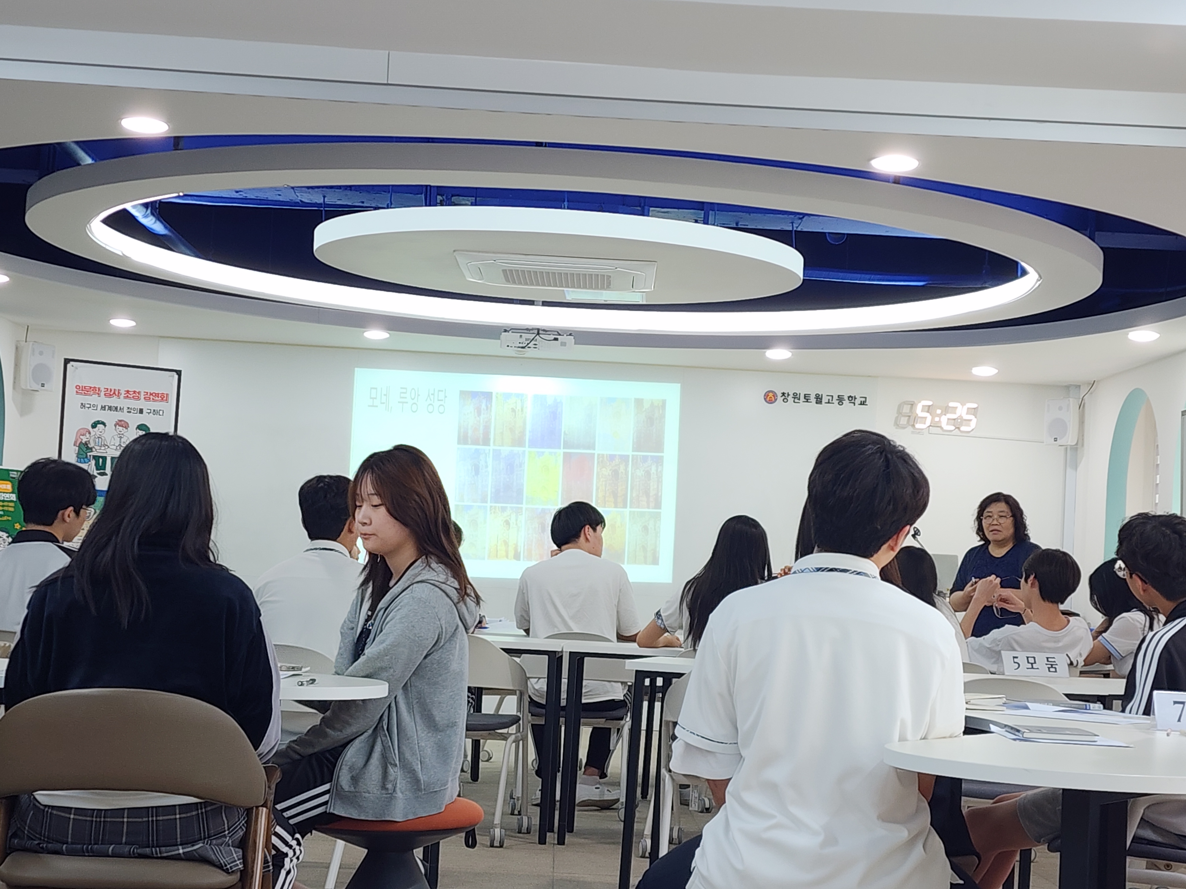 창원토월고등학교(교장 오현숙)는 5월 8일(목), 교내도서관에서 1학년 학생 30여명을 대상으로 ‘2025년 인문학 강사 초청 강연회’ 및 비경쟁독서토론회를 개최하였다.