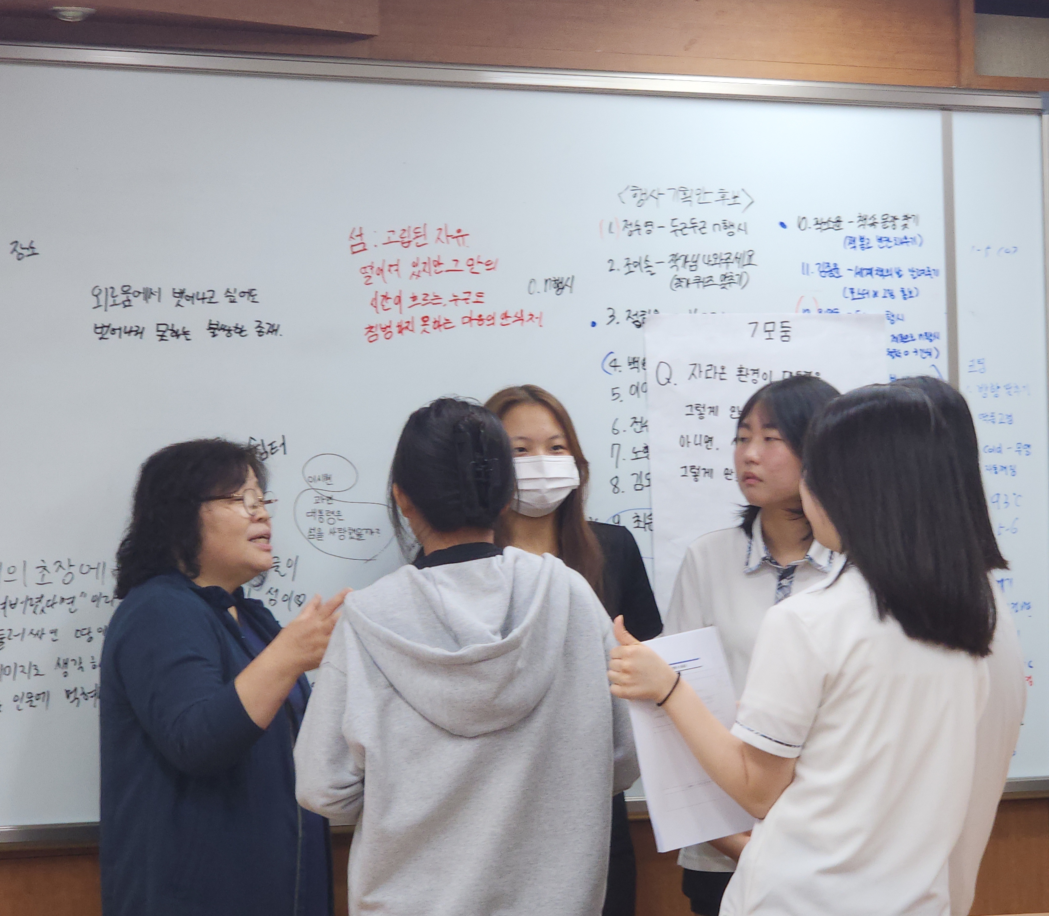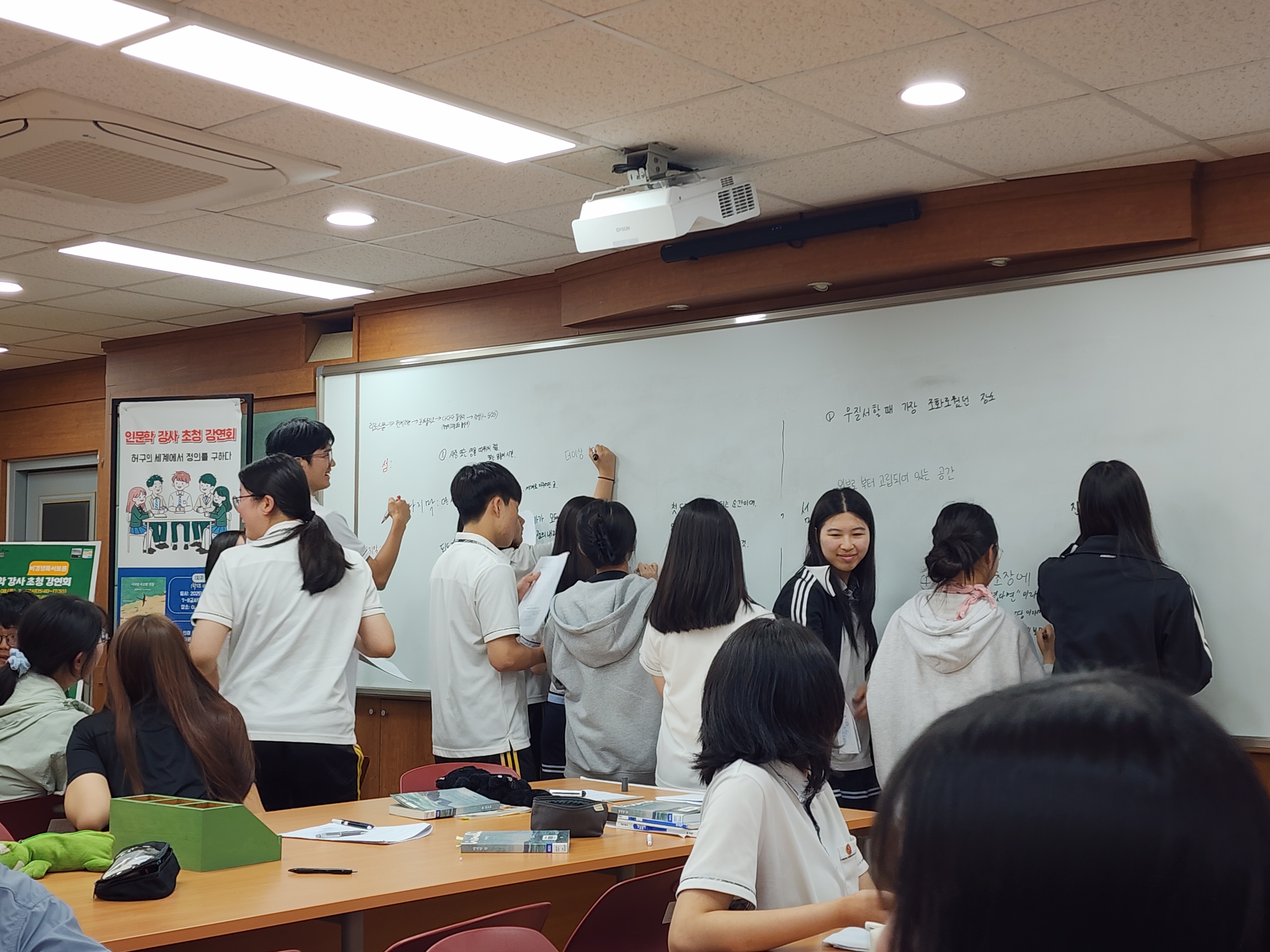 이날은 5월 초에 개최한 ‘제1회 인문학 강연과 독서토론’의 후속 행사이다. 학생들은 ‘허구의 세계에서 정의를 구하다’라는 주제로, 쥴피 리바넬리의 『마지막 섬』을 읽고, 문학 속 상상의 세계에서 현실과 정의에 대해 성찰하는 시간을 가졌다.